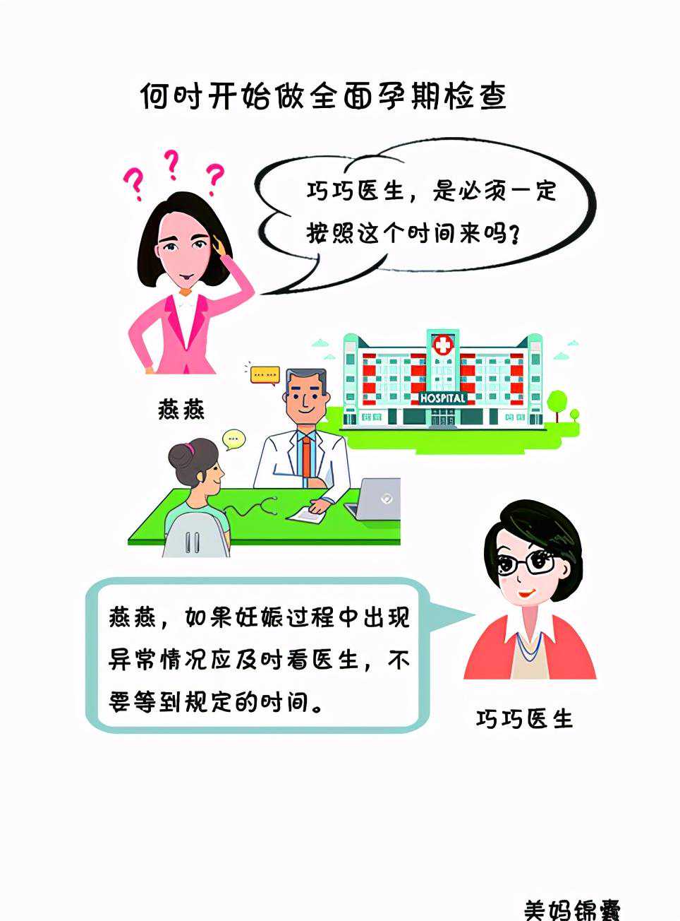 也不是,要灵活掌握,随时有问题或疑问,随时到医院看医生,做必要的孕期检查,整个妊娠过程具体的检查时间安排如下,妊娠12周左右,做全面的产前检查,妊娠12到28周,每月检查一次,妊娠28到36周,每半月检查一次,妊娠36周以后每周检查一次。