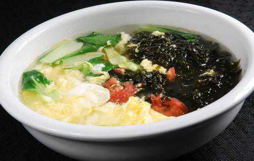 紫菜蛋花汤(紫菜5g,含碘212μg,鸡蛋25g含碘6.8μg)