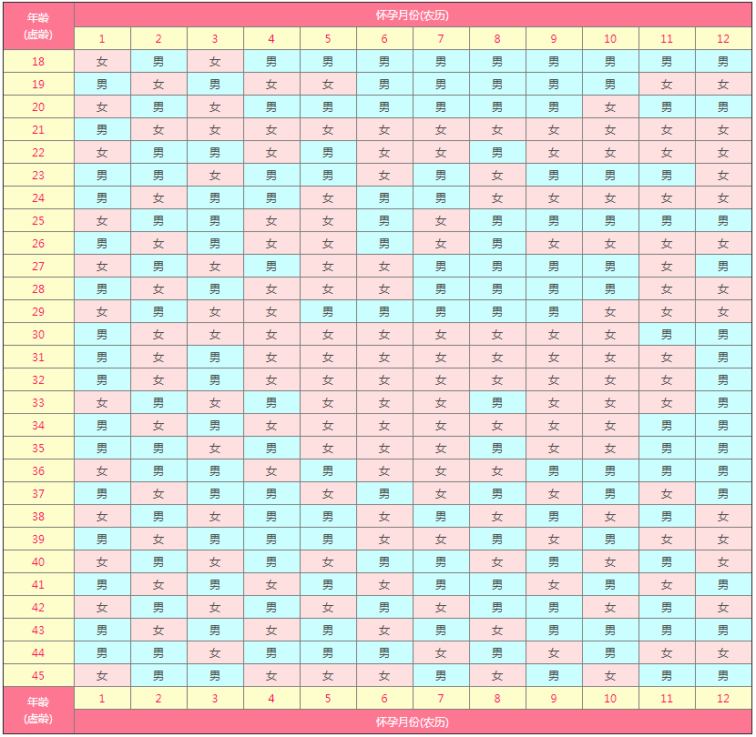 这张传言是清代宫廷太医们根据经验总结出来的一套预测生育的方法论,说是只要根据女性农历虚龄(即真实年龄再加1岁)及怀孕月份,就能推测出这一胎是男是女。