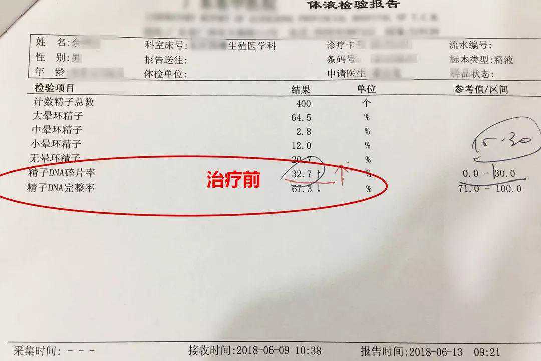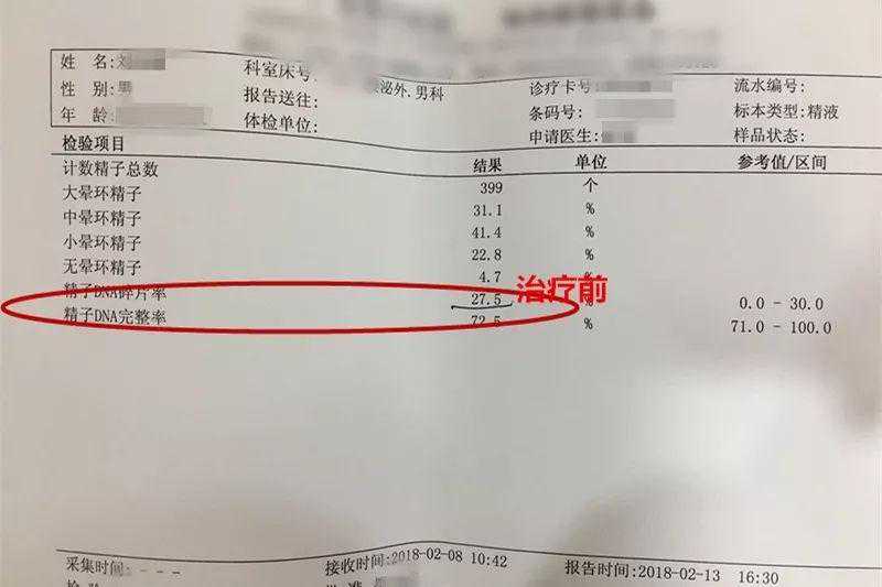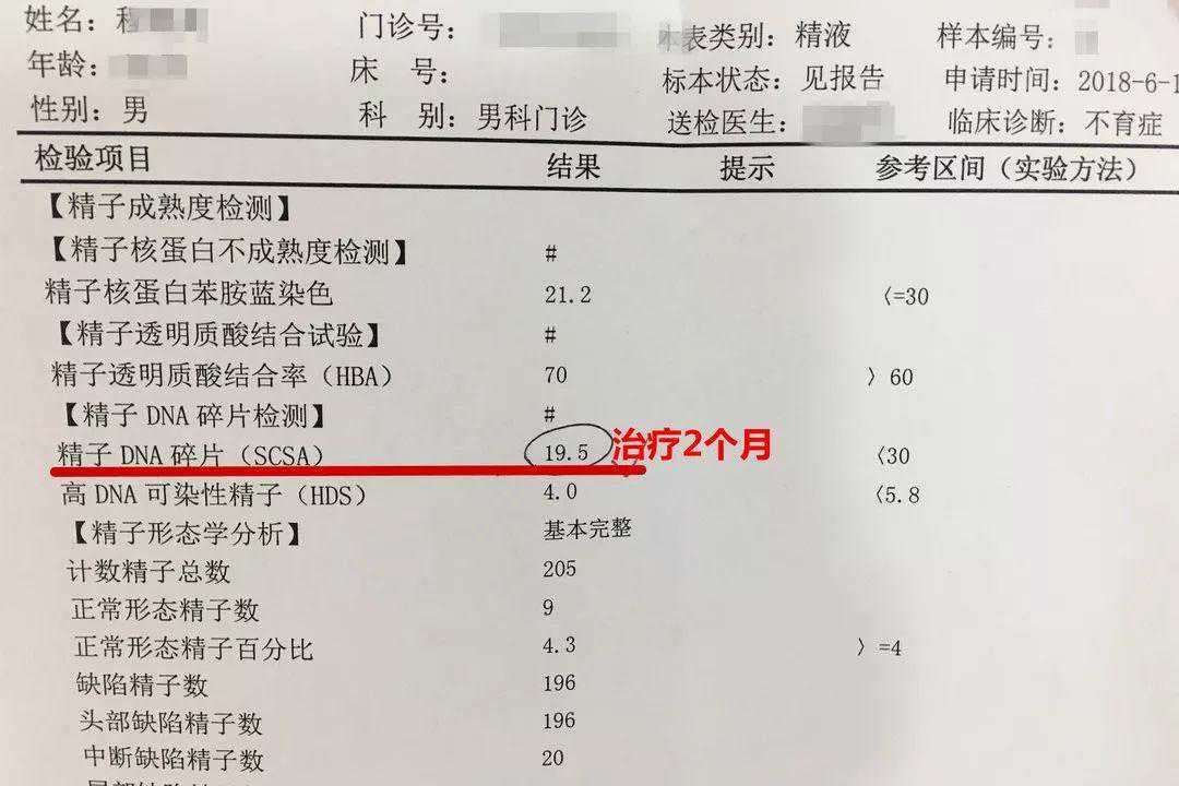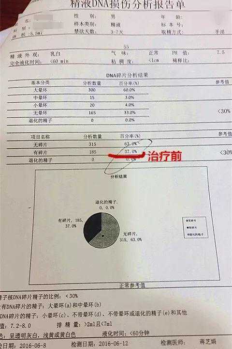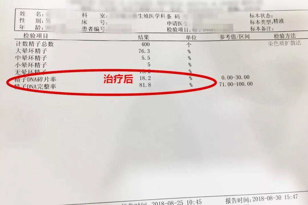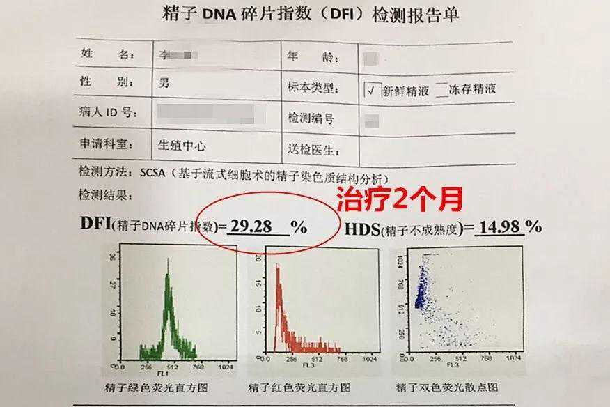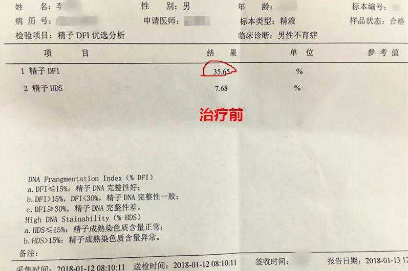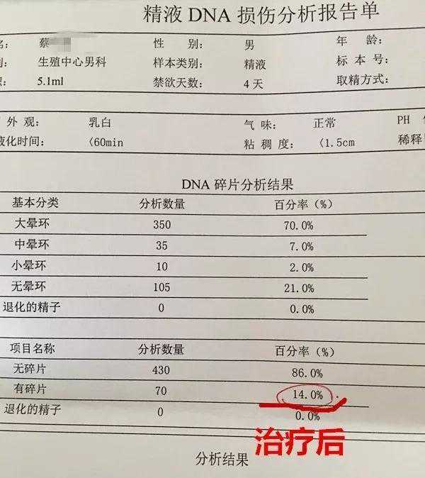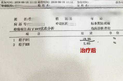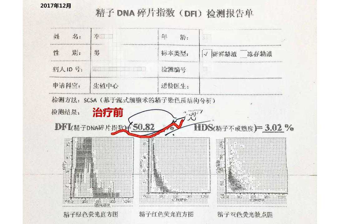 蔡先生,备孕2胎期间女方多次自然流产,查DFI为37%,经两个月治疗后,复查DFI下降到14%。