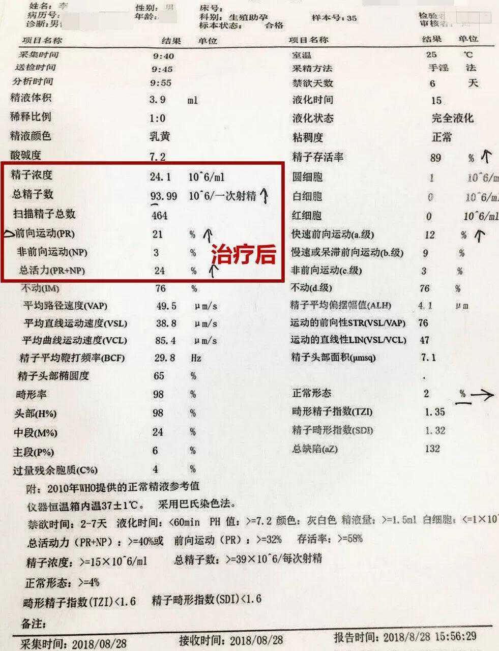 经过治疗后,精子活力(PR)从14%上升到21%,DFI逐渐下降(50.82%→43.44%→29.28%),目前未达到理想标准,仍在调理!