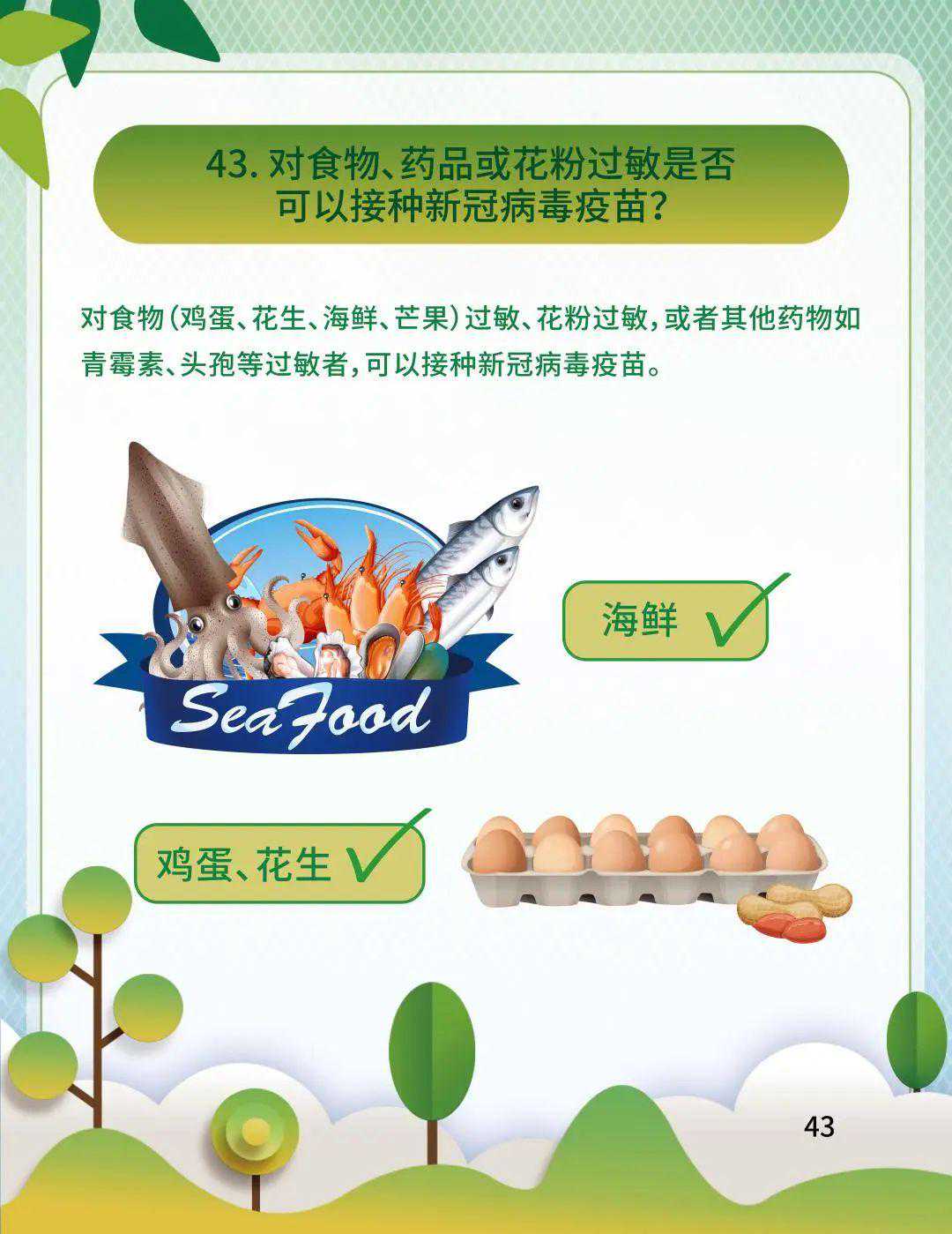 05对食物(鸡蛋、花生、海鲜、芒果)过敏、花粉过敏,或者其他药物如青霉素、头孢等过敏者,可以接种新冠病毒疫苗。