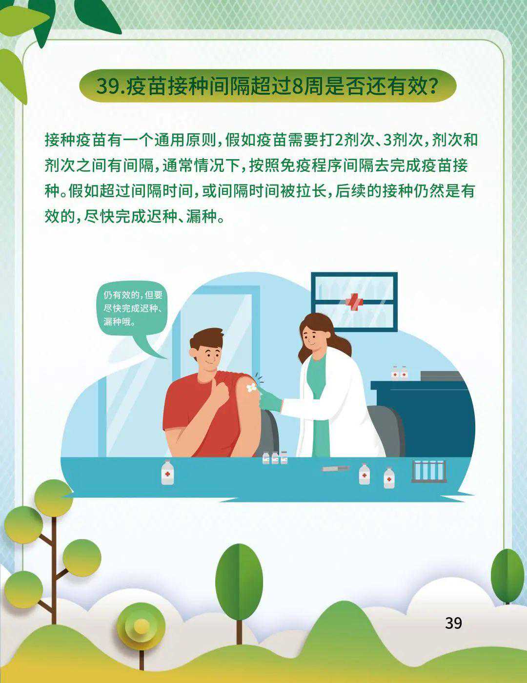 02接种疫苗有一个通用原则,假如疫苗需要打2剂次、3剂次,剂次和剂次之间有间隔,通常情况下,按照免疫程序间隔去完成疫苗接种。假如超过间隔时间,或间隔时间被拉长,后续的接种仍然是有效的,尽快完成迟种、漏种。