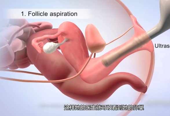 提卵要在阴道超声的引导下进行,先将超声探头置入阴道内,然后在卵巢内找到卵泡,再用一根又细又长的针穿过阴道壁,进入卵巢,从卵泡中吸取成熟的卵子。