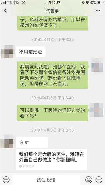 “客户可以选择在广州做或者去泰国做,收费是一样的,多数客户还是选择在广州这边做。”李先生又表示,试管不一定非得去泰国做,他们机构把第三代技术搬到了国内。
